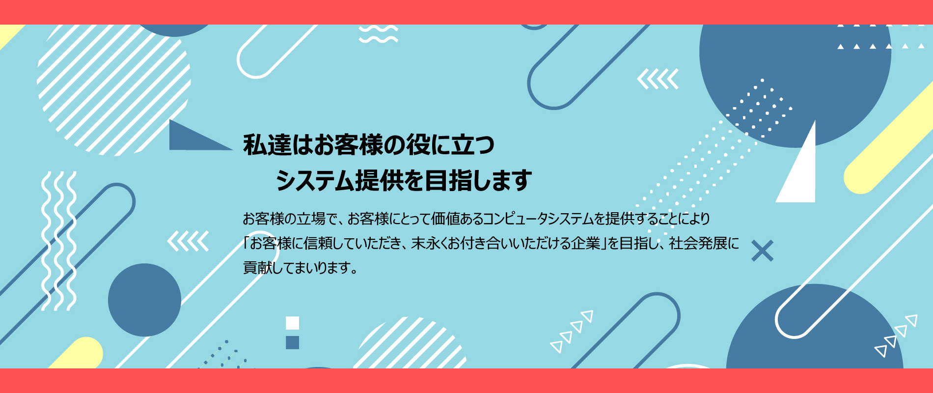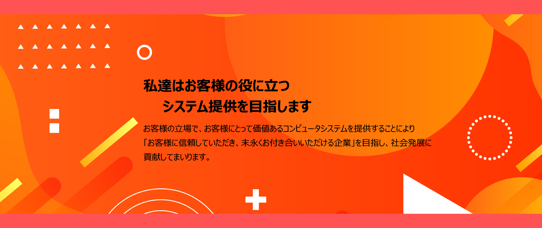 業務アプリケーションを中心に様々なシステムの設計・開発~稼働支援までを経験豊富な人材がお客様に寄り添いトータルにサポートします。